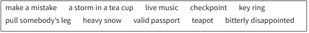 | Idiom | A fixed phrase whose meaning is not literal | pass the buck, hit the sack |